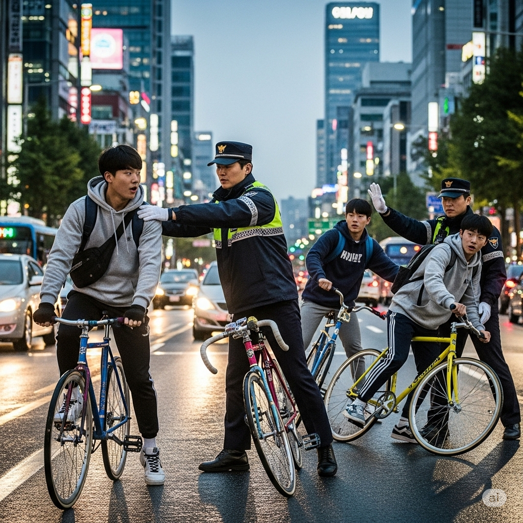 그동안 픽시 자전거는 자동차나 원동기에 속하지 않고 브레이크가 없어 자전거로도 분류되지 않는 법적 사각지대에 있었습니다. 하지만 경찰은 도로교통법을 재검토한 결과, 브레이크 없는 픽시 자전거의 도로 운행이 **도로교통법 제48조 제1항 '안전운전 의무 위반'**에 해당한다고 판단했습니다.
